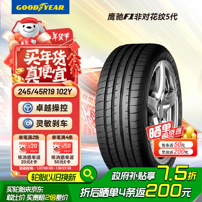 百亿补贴:固特异(Goodyear)汽车轮胎245/45R19 102Y EAG F1 ASY5适配奥迪A6L/比亚迪汉小鹏P7