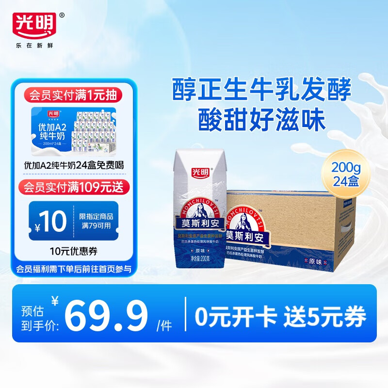 莫斯利安 原味 酸牛奶 2.8g蛋白质 利乐钻 200g 24盒