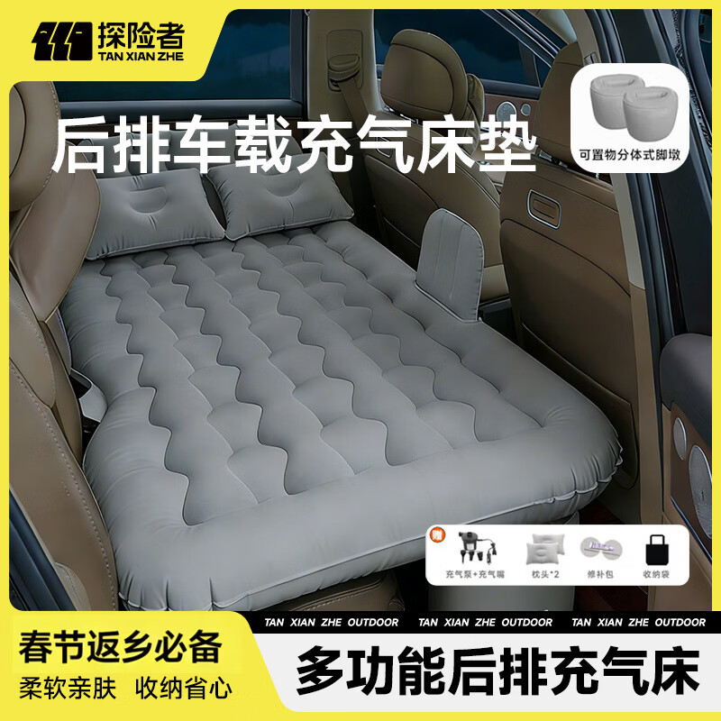 探险者充气床车载充气床垫汽车后排睡觉垫自动充气床垫自驾露营装备全套 【双枕款】后排车载 充气床-送车载充气泵